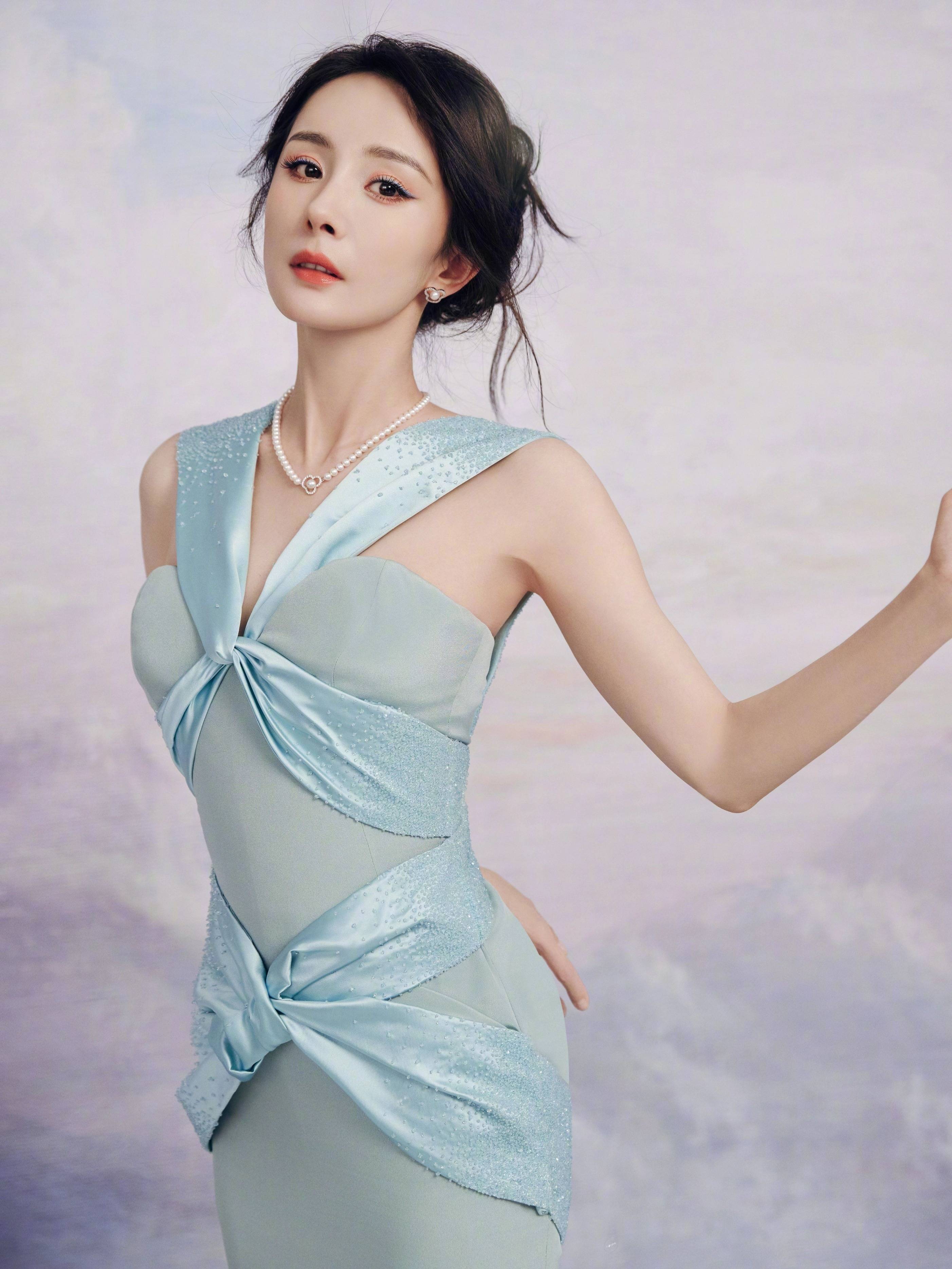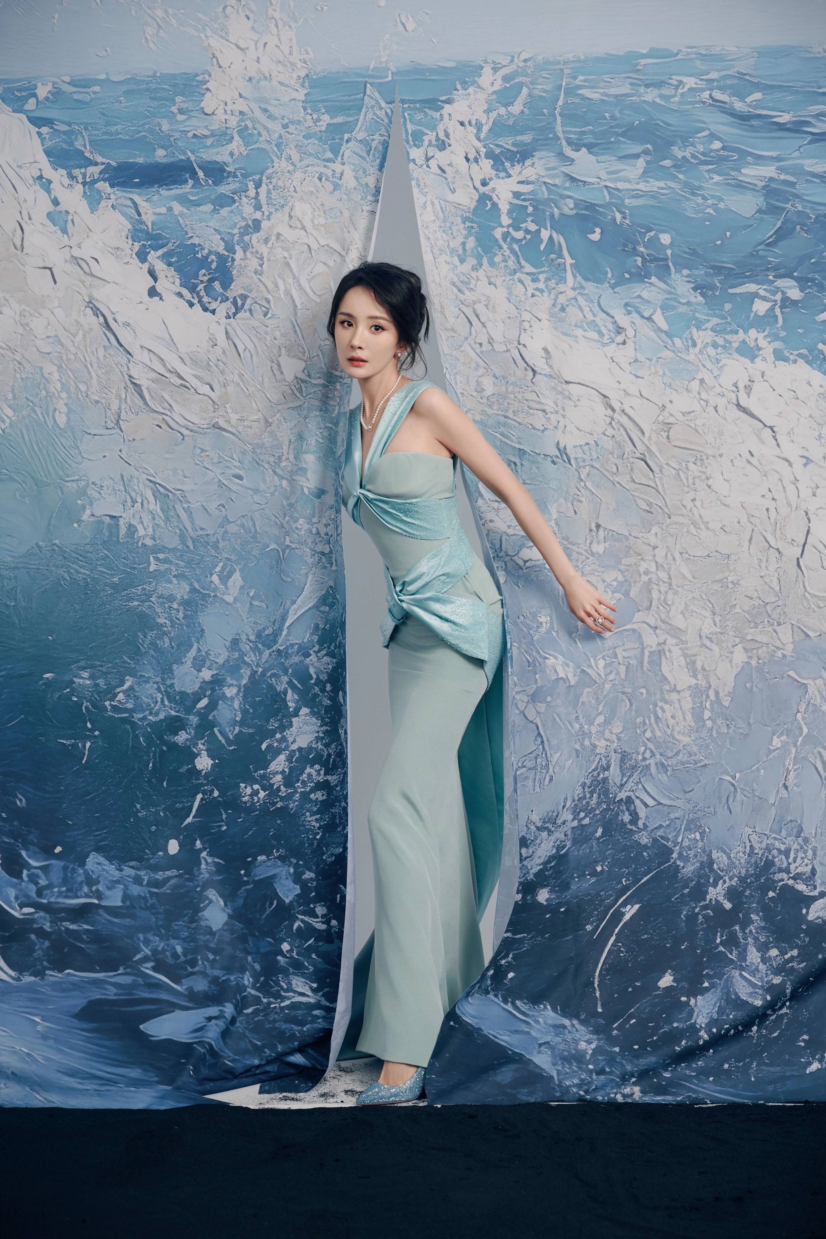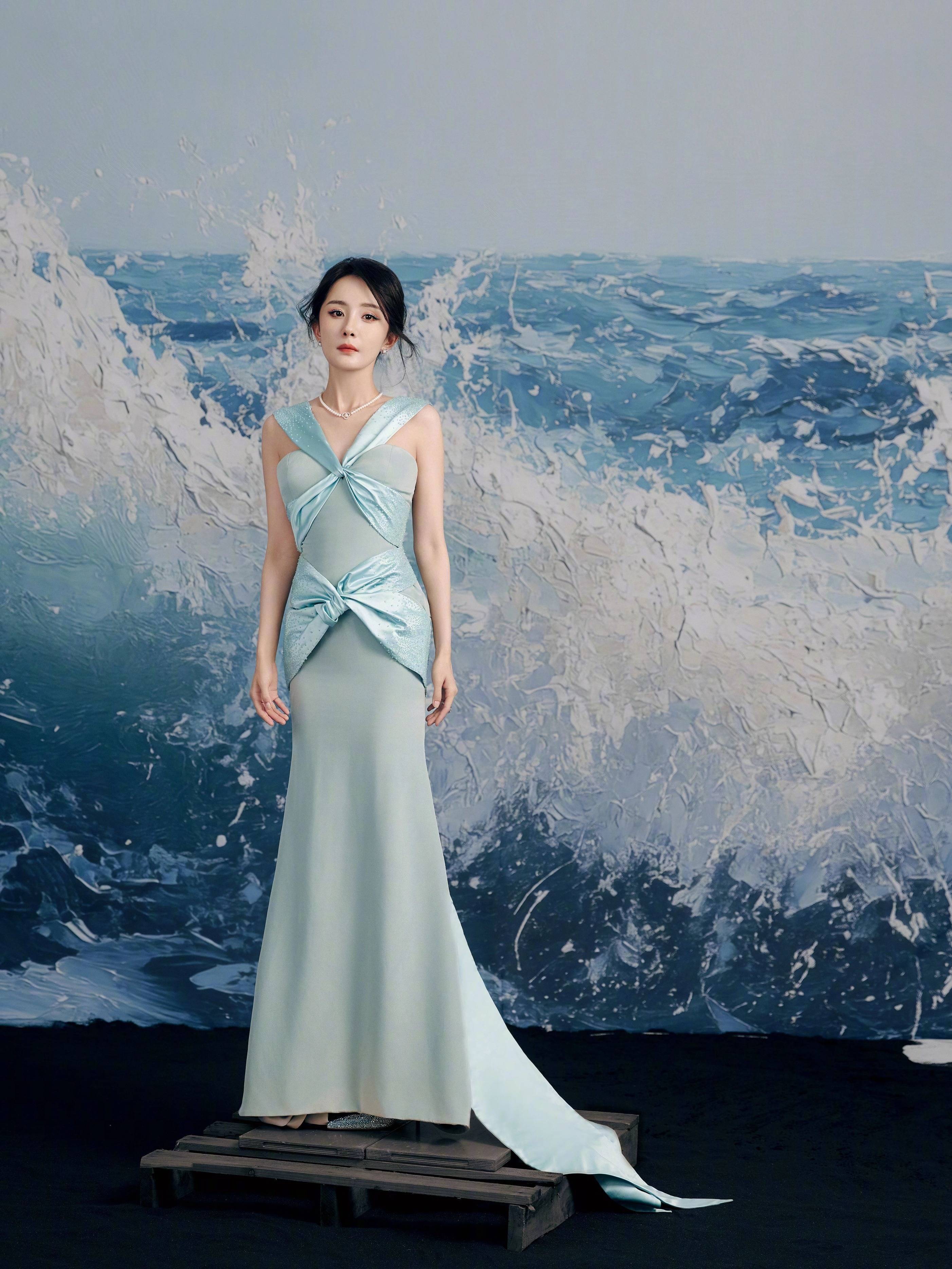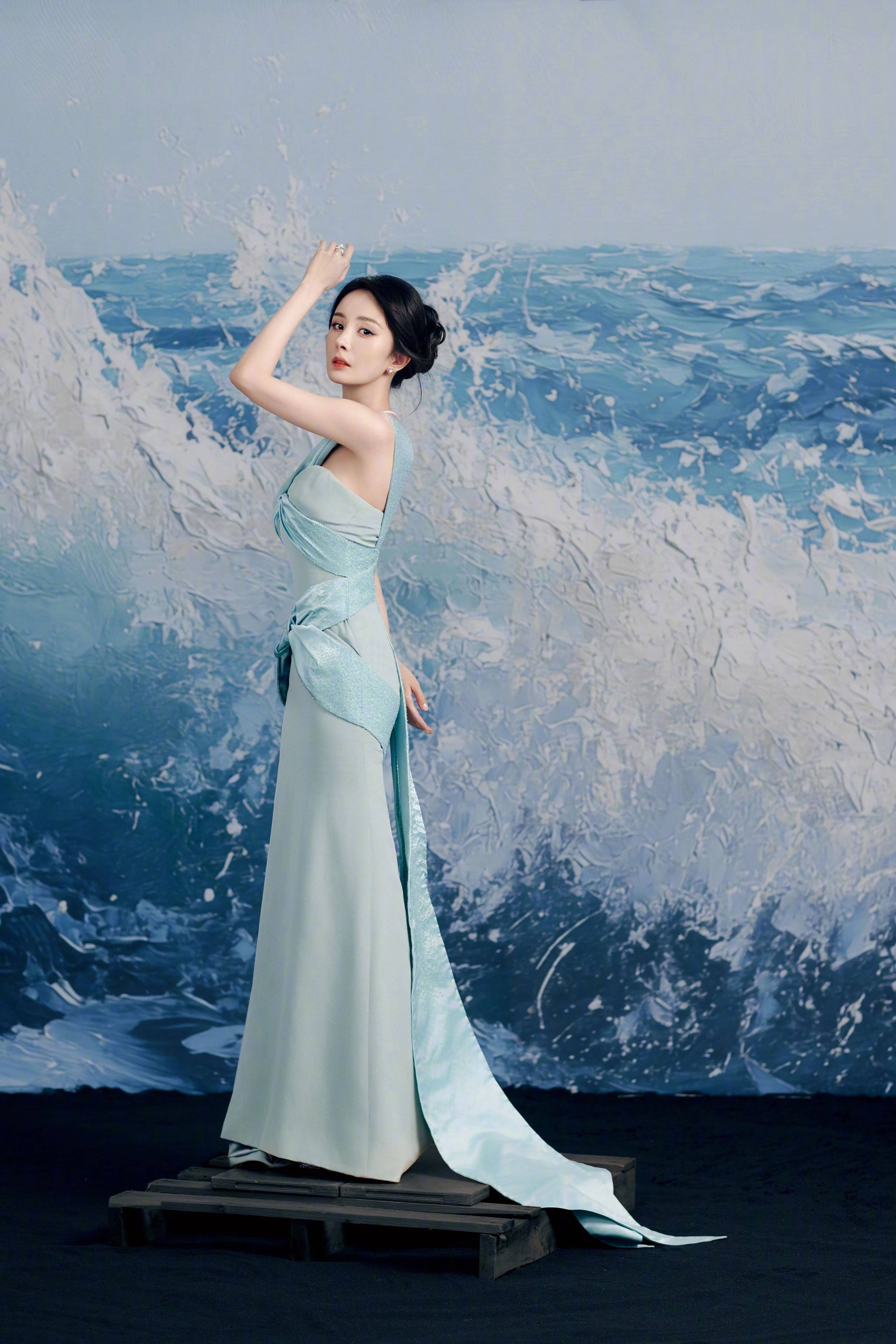 整体而言,这套造型的魅力就在于三个字:轻盈感。冰蓝色调带来冷静气质,腰身剪裁突出了比例优势,裙摆的延伸感让双腿更加修长。再加上海浪背景的烘托,杨幂整个人像是乘风而来的女神,既美丽动人,又气场全开。