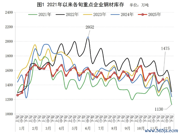 12月15日,中钢协数据显示,2025年12月上旬,重点统计钢铁企业钢材库存量1475万吨,环比上一旬增加47万吨,增长3.3%;比年初增加238万吨,增长19.2%;比上月同旬减少74万吨,下降4.8%;比去年同旬增加57万吨,增长4.0%,比前年同旬增加65万吨,增长4.6%。