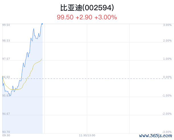比亚迪股价大幅上涨,最新价99.50元/股,涨幅3.00%。