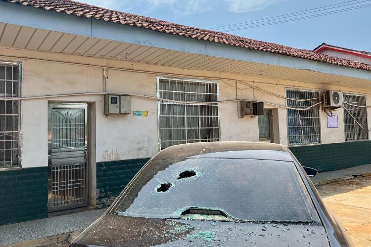 一辆停在现场附近的车辆因爆炸受损。新华社记者陈振海 摄
